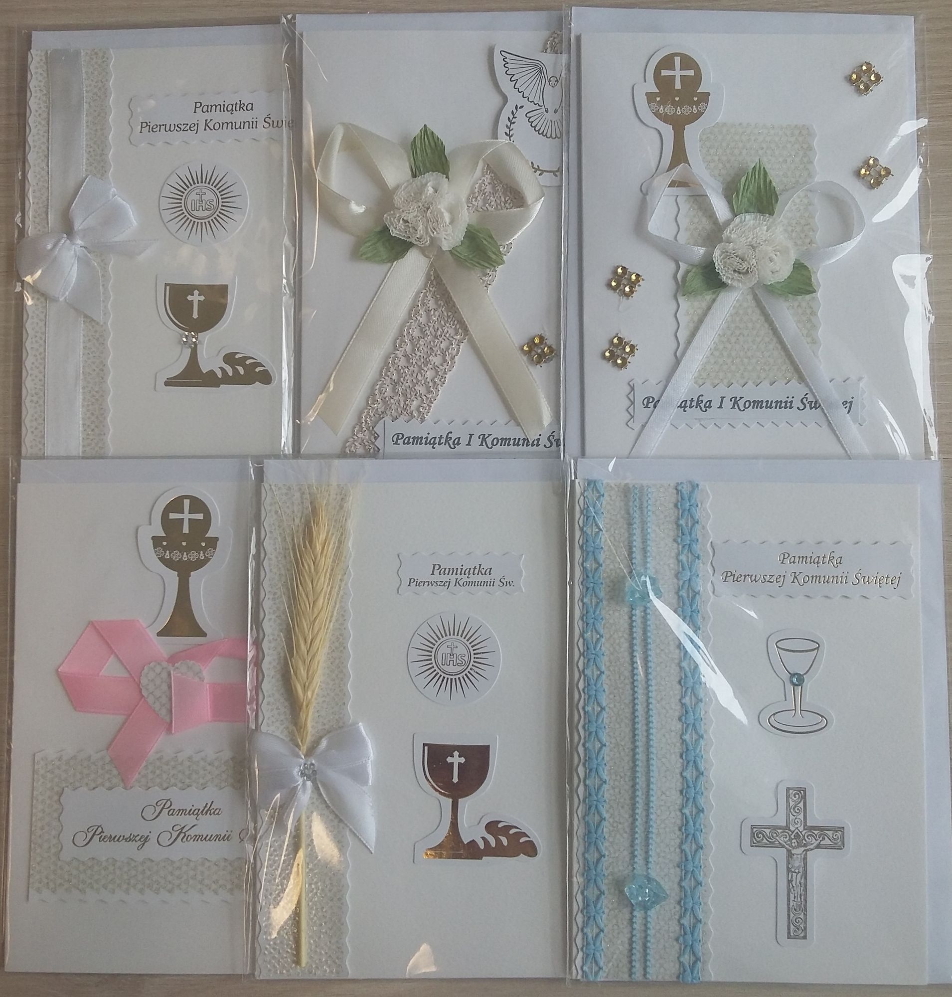 Ozdobna kartka pocztowa z okazji I komunii. Dołączona koperta. Robiona ręcznie.