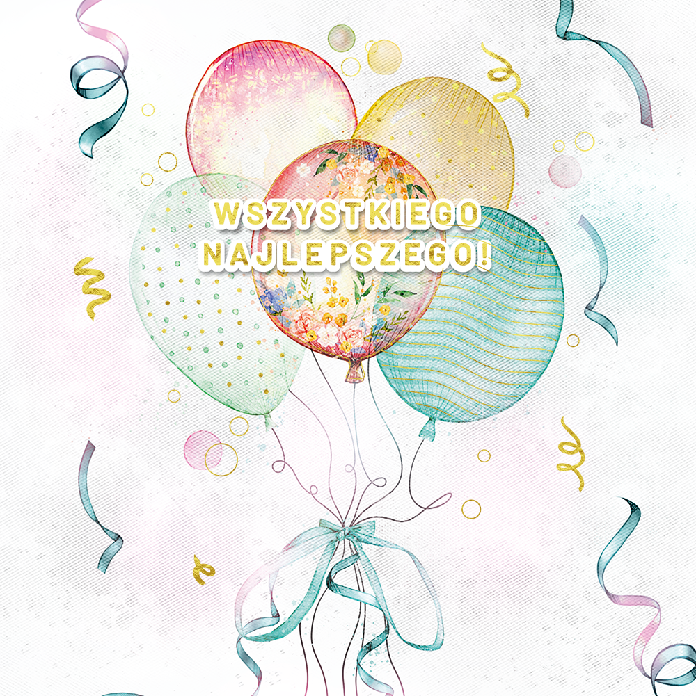 Karnet w formacie 15 x 15 cm. Wydrukowany na wysokiej jakości papierze. Karnet z tłoczonymi wzorami na całej powierzchni oraz złoceniem. W zestawie kolorowa koperta.