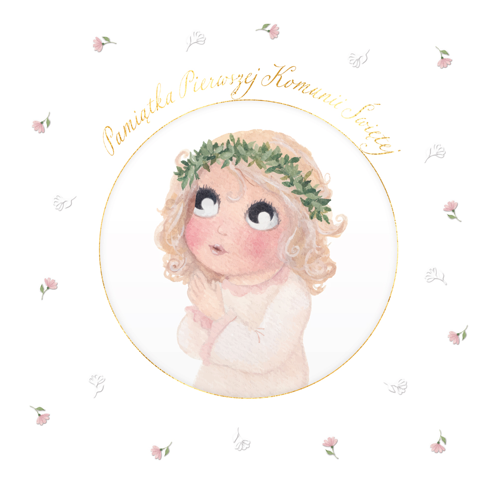 Karnet kwadratowy 15 x 15 cm z wyciętym kółkiem. Złocony i tłoczony, teksy życzeń w środku. Wydrukowany na wysokiej jakości papierze. W zestawie bilecik do prezentu oraz koperta.