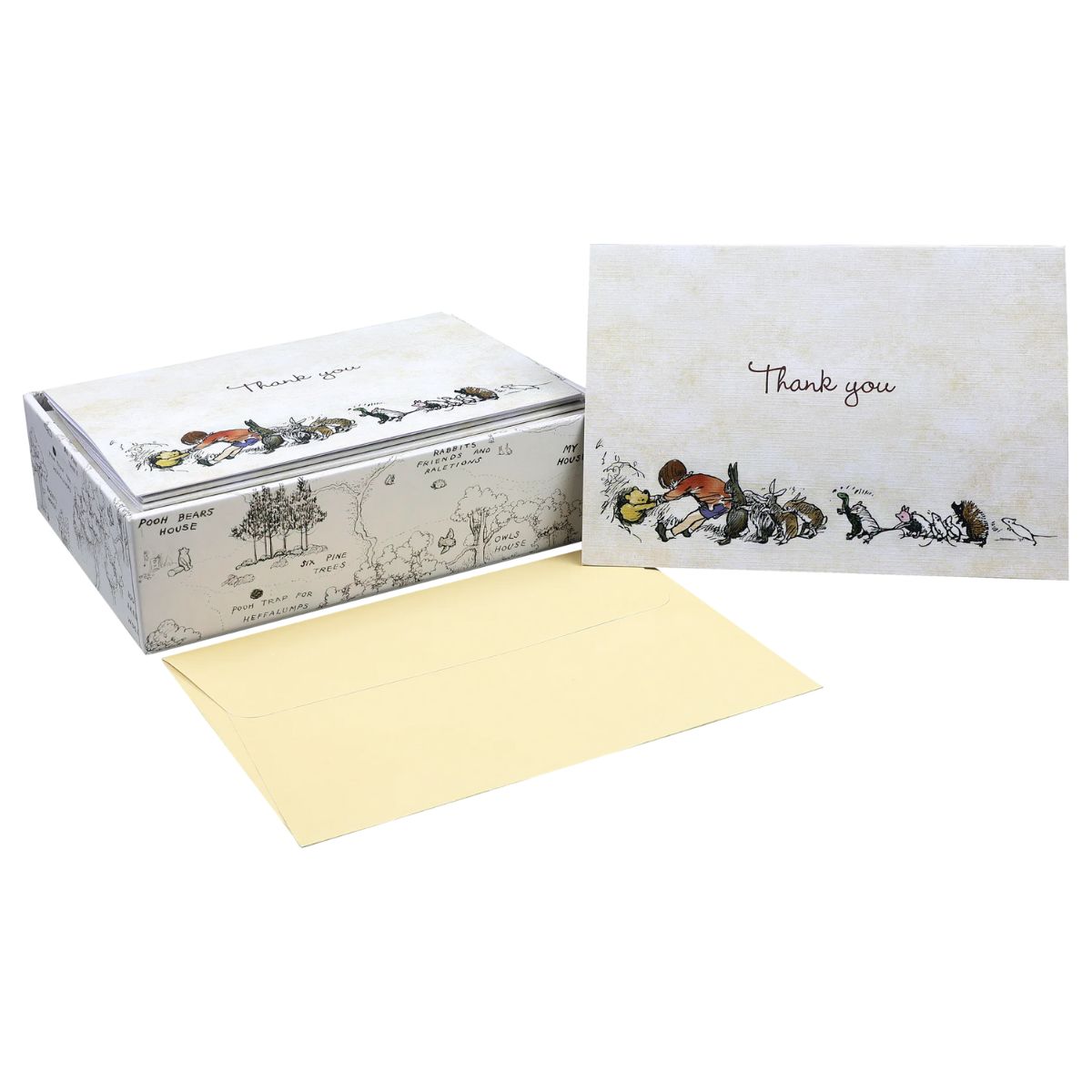 Urocze kartki z podziękowaniami przedstawiają grafikę Ernesta H. Sheparda dla Kubusia Puchatka autorstwa A. A. Milnea, w której, między innymi, Puchatek zjada za dużo i należy go wyciągnąć z drzwi wejściowych Królika przez Christophera Robina, Rabbita oraz wszystkich przyjaciół i krewnych Rabbita.