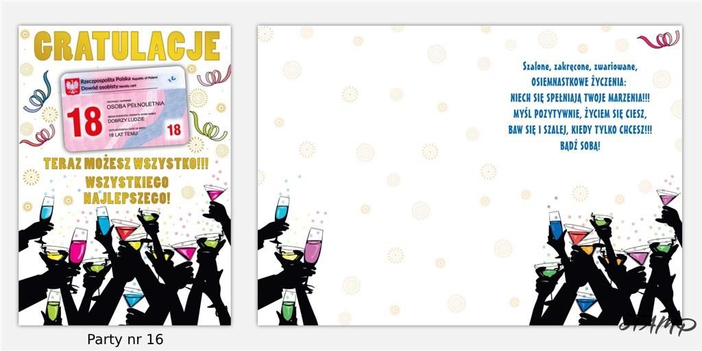 Karnet Party naklejany B6+koperta Urodziny 18 wz16