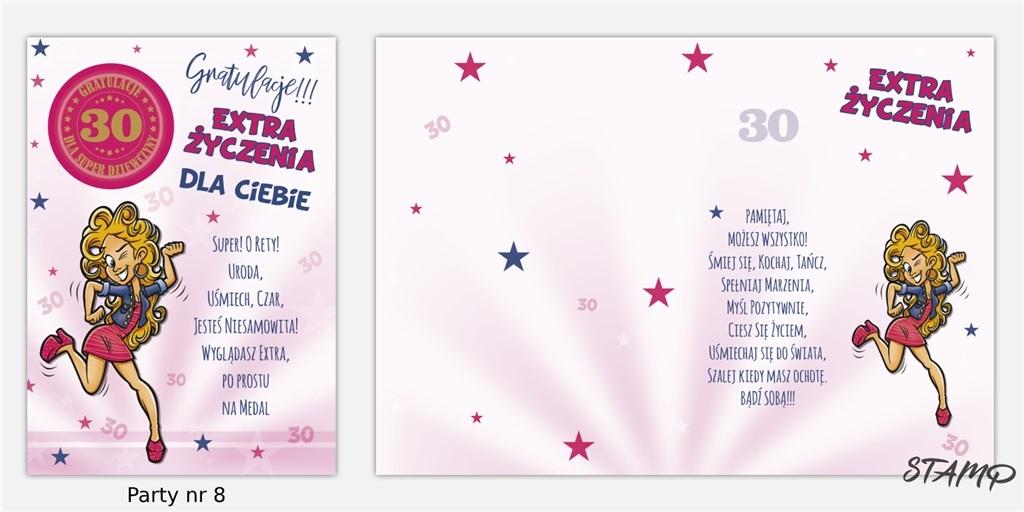 Karnet Party naklejany B6+koperta Urodziny 30 wz08