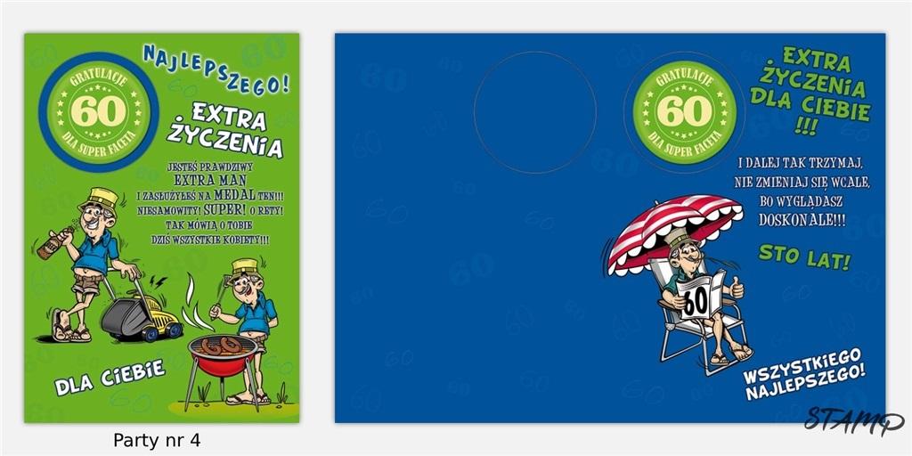 Karnet Party naklejany B6+koperta Urodziny 60 wz04
