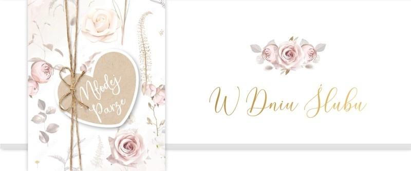 Ekskluzywny karnet ze złoceniem lub srebrzeniem, wykonany na perłowym papierze z dużą ilością dodatków