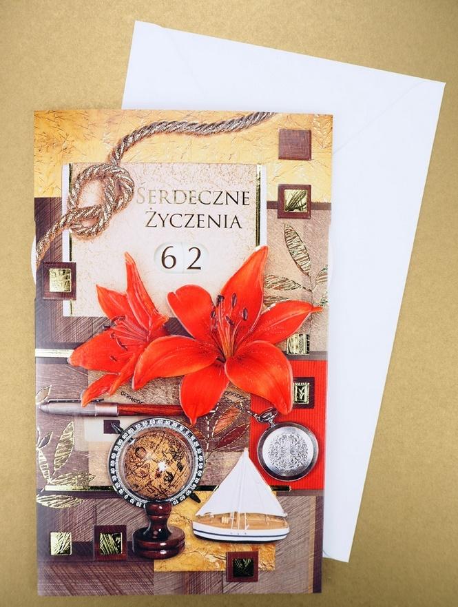 Możliwość ustawienia wieku jubilata. Wewnątrz ozdobny środek i życzenia.