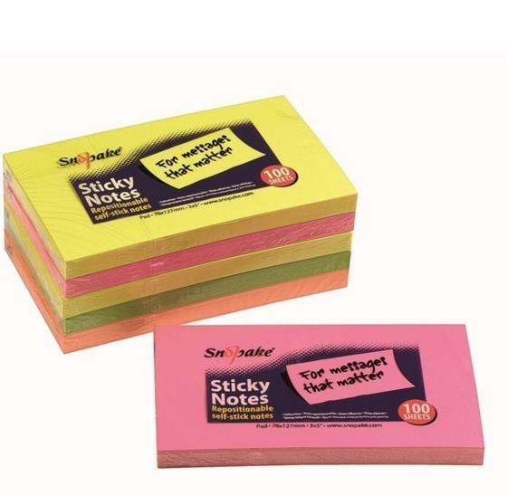 Kostka kolorowych samoprzylepnych karteczek. Opakowanie zawiera łącznie 100 szt. karteczek w neonowych kolorach, które przydają się do zaznaczania dokumentów i opisywania stron. Można je łatwo przyklejać i odklejać. Kostka dostępna w 4 kolorach.