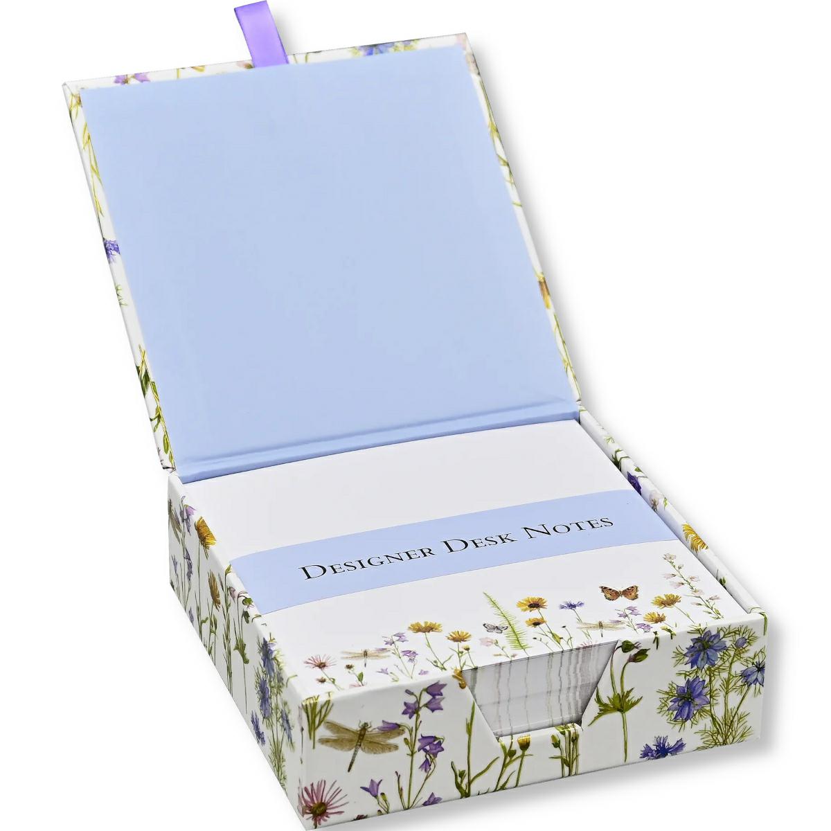 Karteczki zdobione marki Peter Pauper Press Dziki Ogród (Wildflower Garden). W zamykanym na magnes pudełku znajdziemy 250 szt. kartek wykonanych z wysokiej jakości papieru. Bloczek ten jest eleganckim zamiennikiem tradycyjnej kostki biurowej, która znajduje się na prawie każdym biurku - w pracy i w domu. Warto mieć je pod ręką, gdy trzeba coś szybko zanotować. Każda kartka ma delikatny nadruk, kartki nie są klejone i mają wymiar 10 x 10 cm.