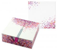 Zdobione 250 karteczek do zapisków, pakowane w eleganckie pudełko z wstążką, zamykane na magnes. Karteczka o wymiarze 10x10 cm.