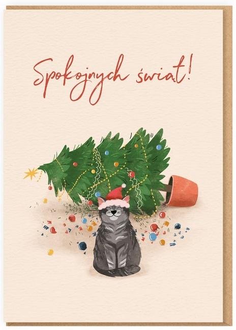 Święta to magiczny czas, podczas którego nasi futrzaści i pierzaści pupile mają szansę przemówić ludzkim głosem! Co powie Twój kot na usprawiedliwienie ekscesów bombkowo-choinkowych? Kartka bożonarodzeniowa KOT / SPOKOJNYCH ŚWIĄT! to idealny pomysł na prezent dla kociary lub kociarza, dla których jest to szczególnie trudny czas z powodu niefrasobliwości ich futrzaków! Ta urocza kartka świąteczna z motywem kota sprawdzi się także jako wyjątkowy prezent dla miłośnika zwierząt. Kartka bożonarodzeniowa KOT / SPOKOJNYCH ŚWIĄT! w zestawie z kopertą jest pusta w środku. Została wydrukowana od A do Ż w Polsce na papierze ekologicznym. Jej wnętrze czeka na wypełnienie treścią płynącą prosto z Twojego serca. W sam raz na prezent świąteczny dla kociary! Kartka bożonarodzeniowa KOT / SPOKOJNYCH ŚWIĄT Wymiary kartki (po złożeniu): 12 cm x 17 cm Gramatura papieru: 250 g/m2 W zestawie elegancka koperta z eko kraftu Wymiary koperty: 12,5 cm x 17,5 cm Gramatura koperty: 100 g/m2 Zestaw zapakowany w folię Idealna kartka na święta dla zapalonego czytelnika/mola książkowego Wyprodukowano w Polsce