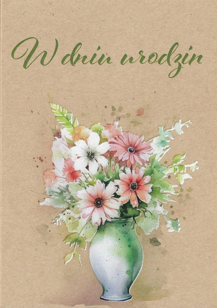 Karnet okolicznościowy z kopertą i życzeniami w środku.