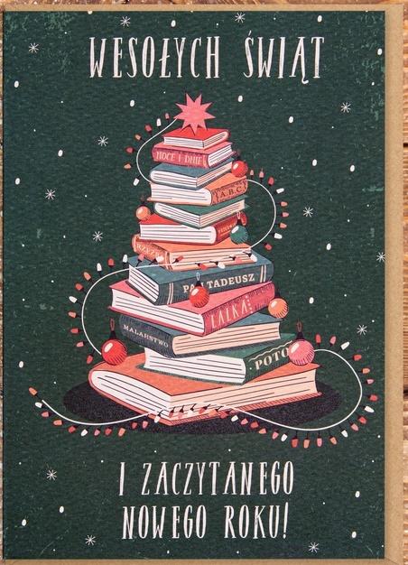 Idealna kartka na święta dla zapalonego czytelnika/mola książkowego