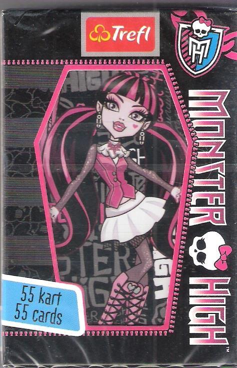 Zestaw 55 standardowych kart do gry ilustrowanych postaciami z serii Monster High.