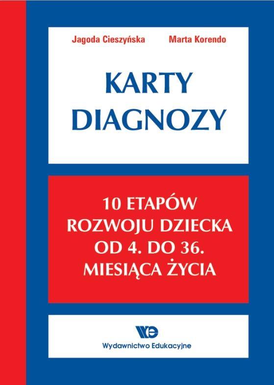 Karty Diagnozy dla terapeutów, logopedów, lekarzy pediatrów, psychiatrów, neurologów i rodziców:- charakteryzują 10 etapów rozwoju dziecka od 4. do 36. miesiąca życia- zawierają dokładny opis umiejętności i sprawności, które powinno posiadać dziecko w określonym przedziale wiekowym- pozwalają w prosty i czytelny sposób monitorować i diagnozować rozwój dziecka- dzięki kartom diagnozy można łatwo sprawdzić, czy dziecko we właściwym czasie osiągnęło kolejne kamienie milowe rozwoju, a tym samym - zapobiec wszelkim nieprawidłowościom.Brak oczekiwanych zachowań, które zostały wyszczególnione w kartach, może być sygnałem wielu poważnych zaburzeń, w także tym autyzmu.