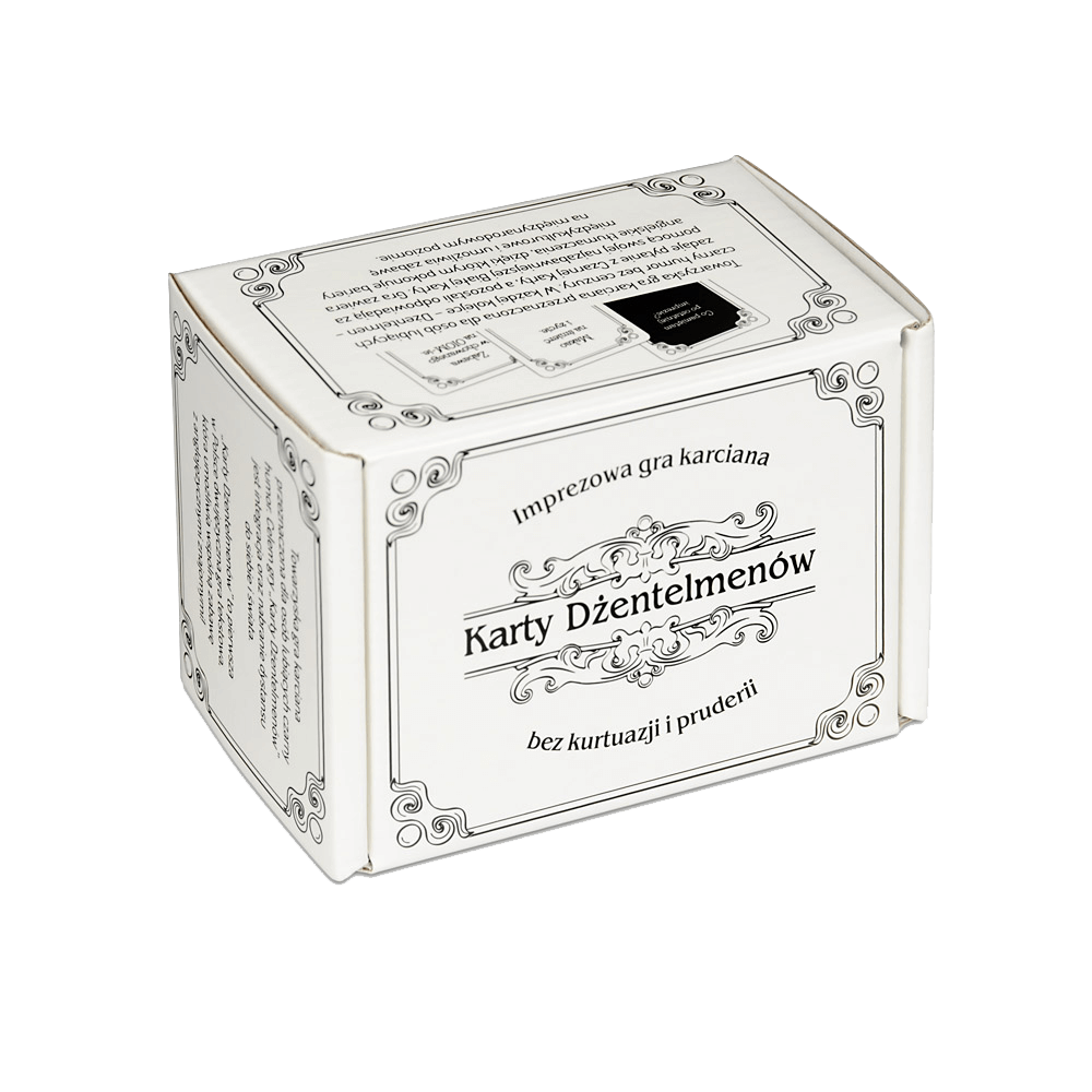 Karty Dżentelmenów to imprezowa gra towarzyska bez kurtuazji i pruderii, za to z ogromną dawką czarnego humoru. Dżentelmeńskie rozgrywki z pewnością urozmaicą każde spotkanie w gronie błyskotliwych i obdarzonych niebywałym poczuciem humoru osób. Nie powinno jej zabraknąć na Twojej imprezie.
