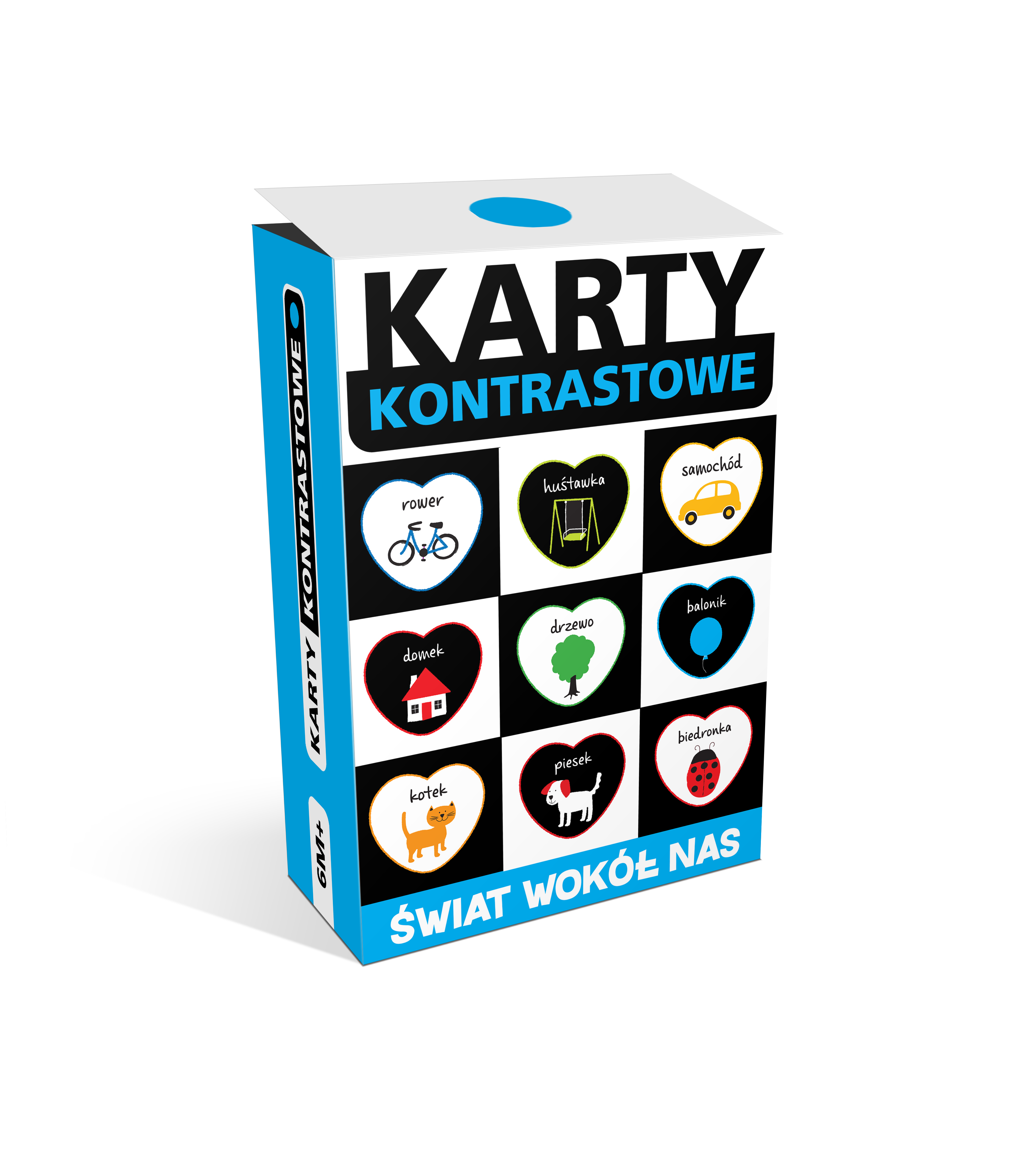 Zestawy kart kontrastowych w praktycznych pudełkach.