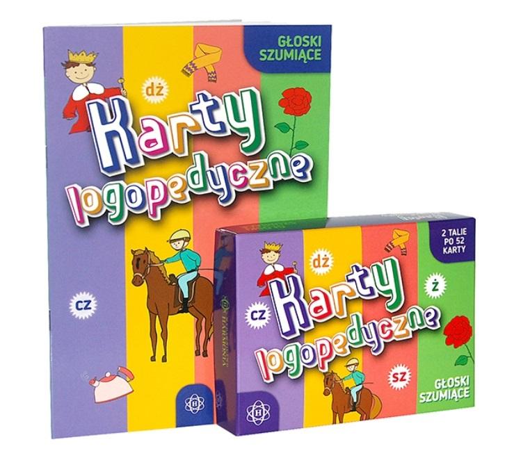 W zestawie znajdują się 2 talie kart logopedycznych, które zostały opracowane na takich samych zasadach jak tradycyjne karty. Funkcję kolorów spełniają tutaj głoski syczące: cz, dż, sz, ż. Zamiast figur karcianych występują ponumerowane obrazki, w których nazwach jest jedna z wymienionych głosek. Karty są oczywiście 52 po 13 dla każdej głoski.