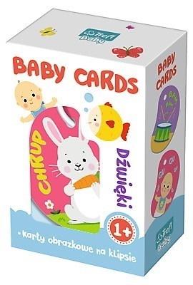 Siedem dwustronnych kart obrazkowych na poręcznym klipsie. Stuk-puk, kum-kun, bam! I już dużo dźwięków znam!