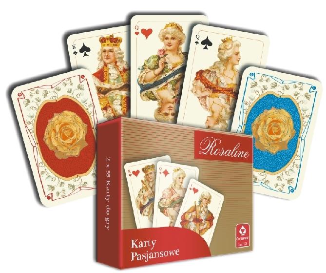 Dwie talie do gry w pasjansa, pakowane w pudełko.