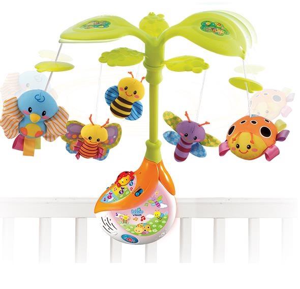 Karuzela do łóżeczka marki VTech wygrywa 40 relaksujących melodii i spokojnych odgłosów natury.