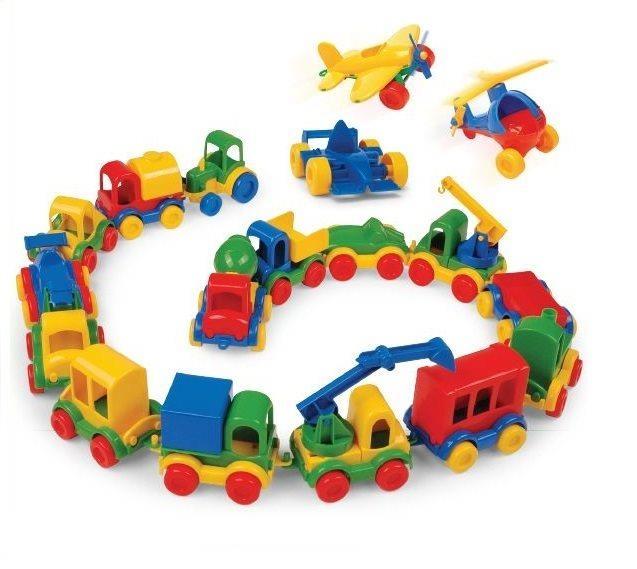Małe, ale bardzo wytrzymałe samochodziki, wykonane z najwyższej jakości tworzywa sztucznego. Cała seria obejmuje takie pojazdy jak: traktor , cysternę , autko , wyścigówkę I , straż pożarną , wagon II , kontener , koparkę , wagon III , ciuchcię , przyczepkę , dźwig , wyścigówkę II, wywrotkę , betoniarkę , samolot , helikopter i formułę 1.