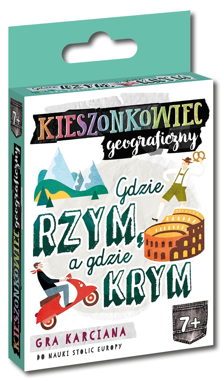 Kieszonkowiec geograficzny Gdzie Rzym, a gdzie Krym to wyjątkowa edukacyjna gra karciana do nauki europejskich stolic przeznaczona dla dorosłych, młodzieży i dzieci już od 7. roku życia. Podczas wciągającej gry poznasz nazwy stolic państw Europy, ich położenie oraz symbole. Kieszonkowiec geograficzny będzie świetną pomocą w szkole, ale też doskonałą okazją do odświeżenia pamięci!