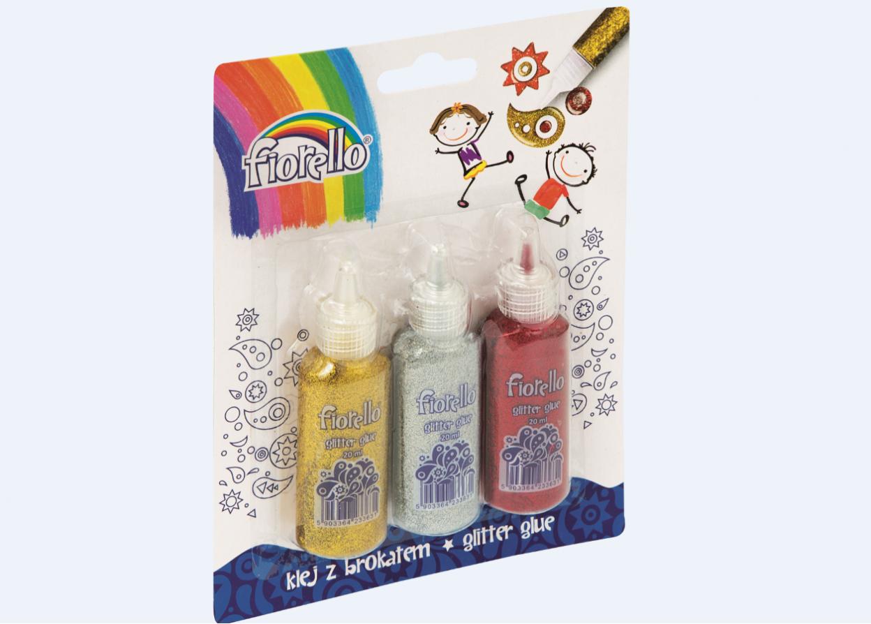 dekoracyjny bezbarwny klej w płynie zawierający drobinki brokatuwygodny: namaluj wzór za pomocą kleju i poczekaj aż zaschnienie wymaga dodatkowych akcesoriów, nie brudzi, nie rozsypuje siępo zaschnięciu drobinki brokatu nie wykruszają sięprzeznaczony do dekoracji papieru, kartonu, drewna i innych powierzchni3 kol. x 20 ml