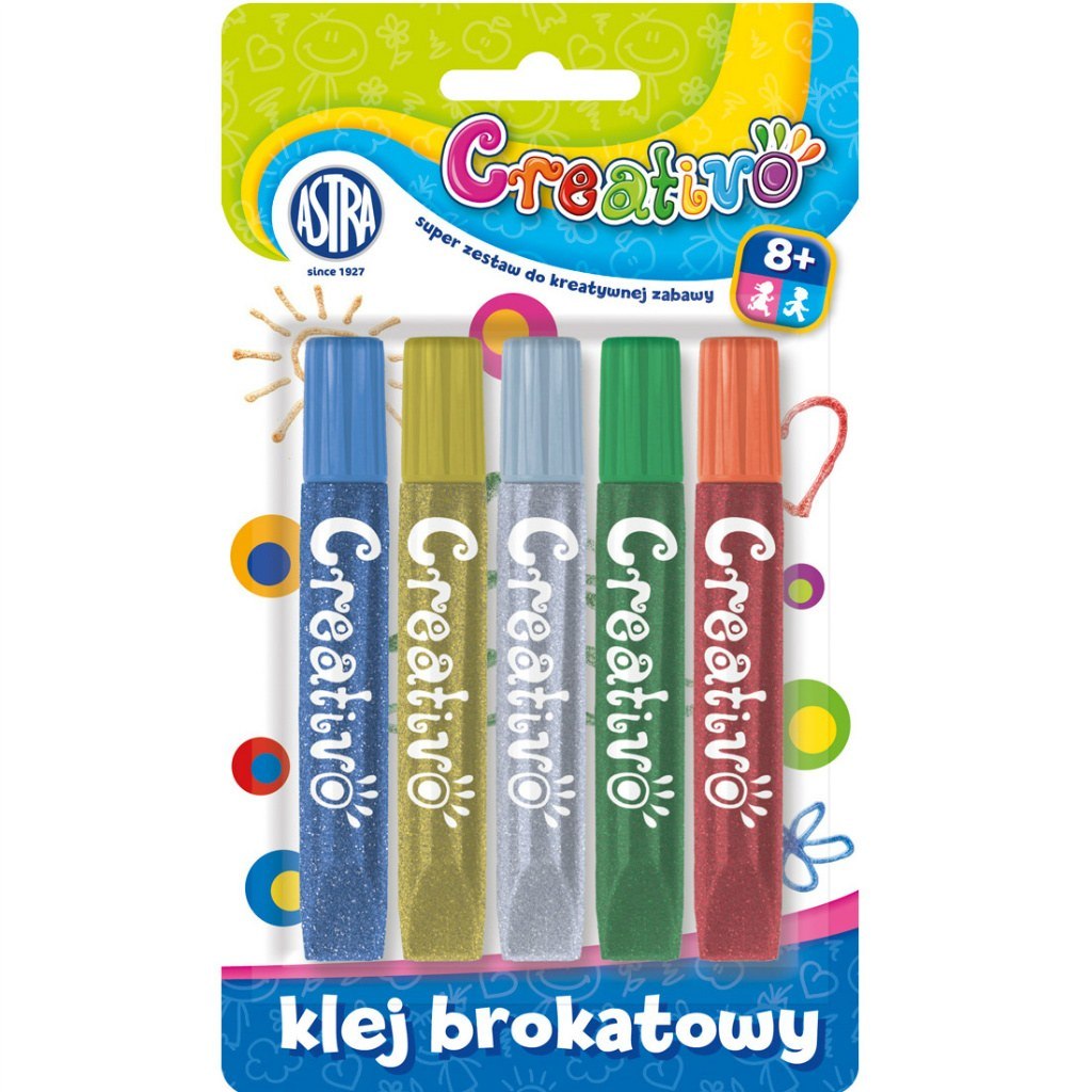 Przeznaczony jest do zdobienia rysunków, malowideł oraz ozdobnego pisania. Można nim również dekorować przedmioty wykonane z gliny, masy solnej itp., mix 5 kolorów