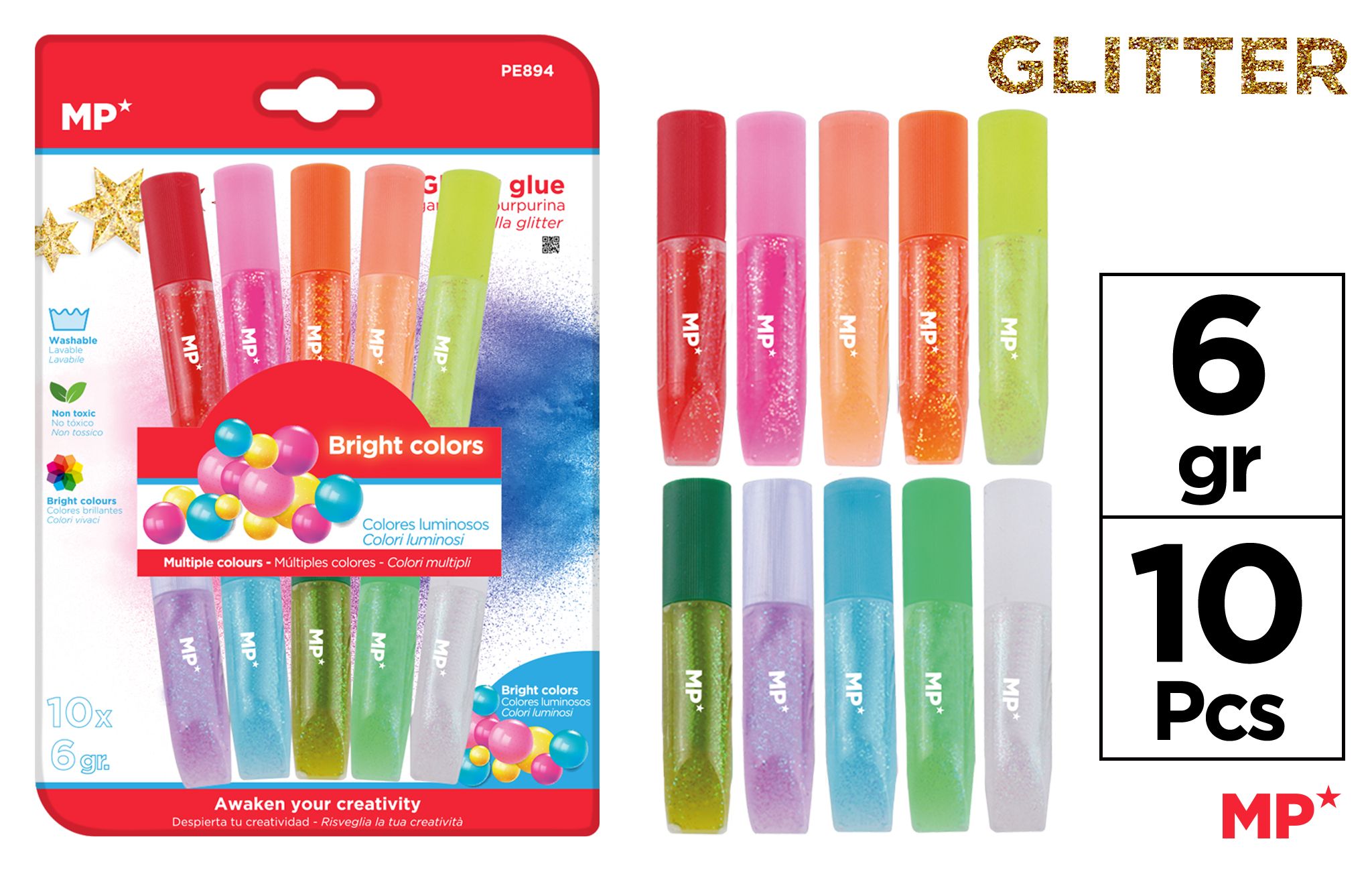 Klej brokatowy w płynie 10 kolorów 10szt./blister MP