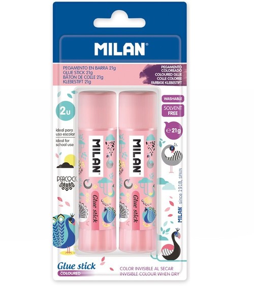 Klej w sztyfcie, 21 g. Obudowa nawiązuje do kolekcji PEACOCK. Po nałożeniu ma fioletowy kolor, który znika po wyschnięciu. Uniwersalny: łatwo skleja papier, karton, tkaninę, filc, korek, skórę i piankę. Szybkoschnący. Bez rozpuszczalnika. Idealny do użytku szkolnego. Rozmiar kleju: 10,5 x Ø 2,5 cm. 2 szt. na blistrze