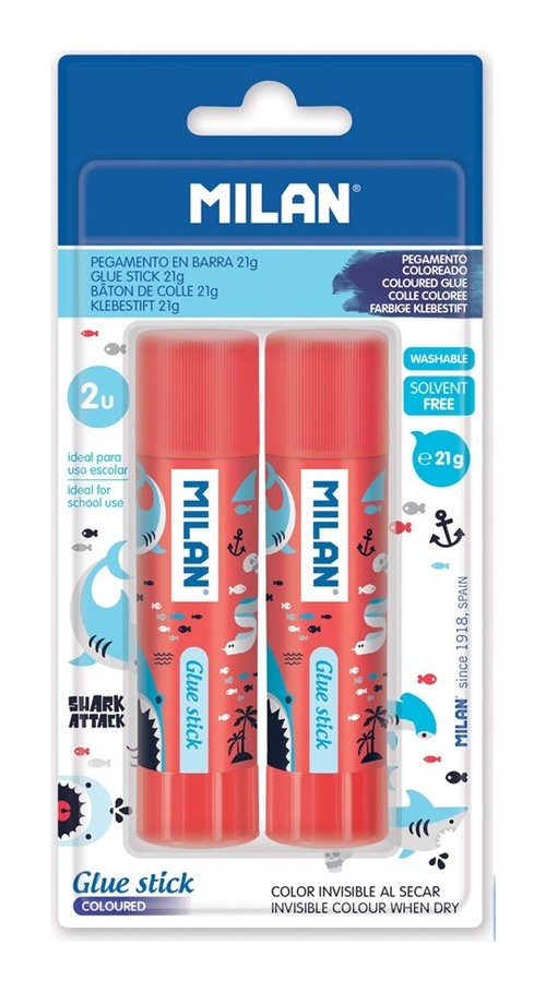 Klej w sztyfcie, 21 g. Obudowa nawiązuje do kolekcji SHARK ATTACK. Po nałożeniu ma niebieski kolor, który znika po wyschnięciu. Uniwersalny: łatwo skleja papier, karton, tkaninę, filc, korek, skórę i piankę. Szybkoschnący. Bez rozpuszczalnika. Idealny do użytku szkolnego. Rozmiar kleju: 10,5 x Ø 2,5 cm.