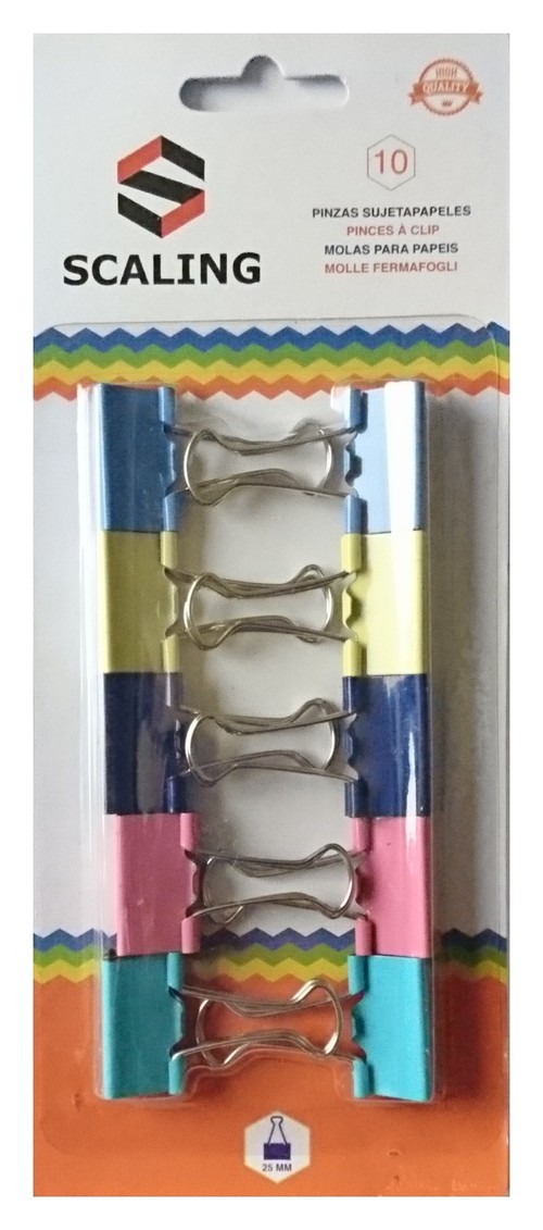 Zestaw klipsów metalowych rozmiar 25mm 10 sztuk na blistrze, różne kolory.