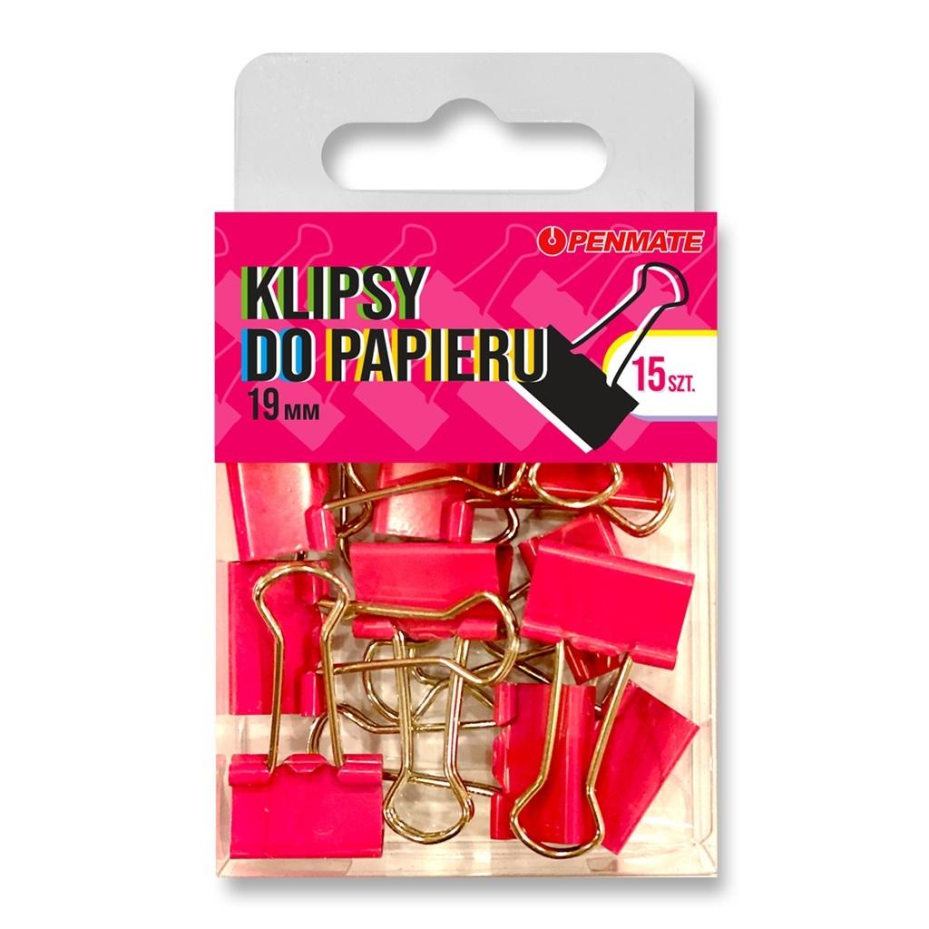 Kolorowe klipsy do papieru o wymiarze 19 mm.
