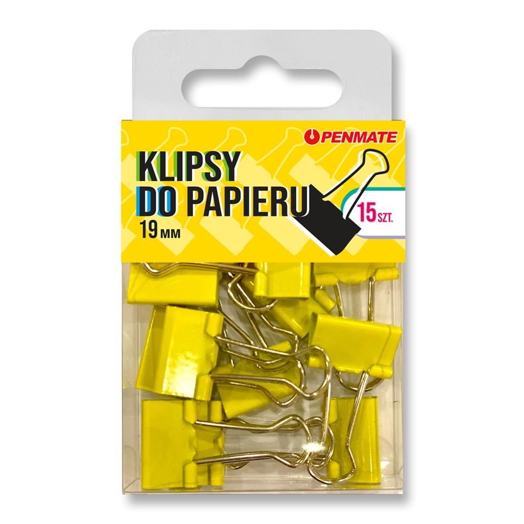 Kolorowe klipsy do papieru o wymiarze 19 mm.