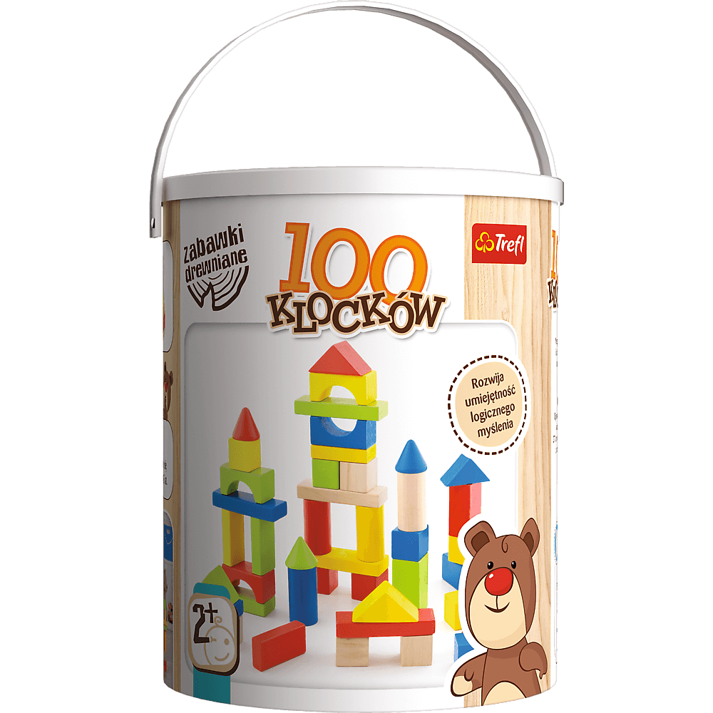 100 Klocków to wielobarwny zestaw licznych figur o różnych wymiarach, które dają nieograniczone możliwości tworzenia własnych konstrukcji