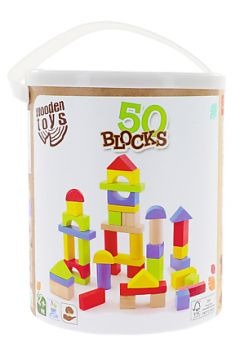 50 Blocks to barwny zestaw figur o różnych wymiarach, dające dziecku nieograniczone możliwości tworzenia konstrukcji.
