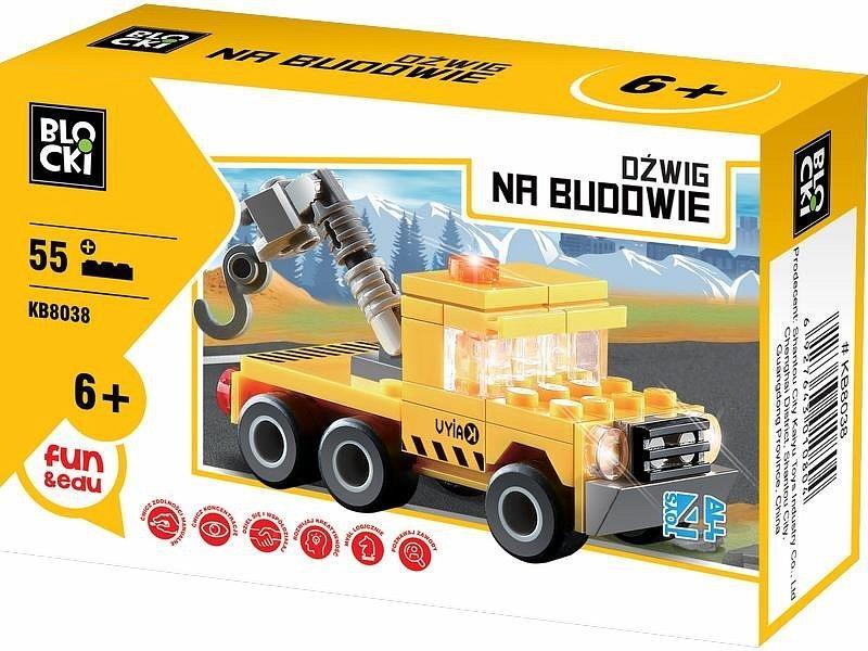 Zestaw klocków umożliwiający zbudowanie maszyny budowlanej - dźwigu..