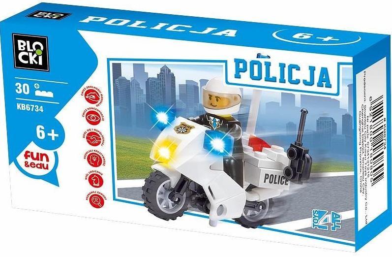 Komplet klocków do budowy motocykla pościgowego Policji.