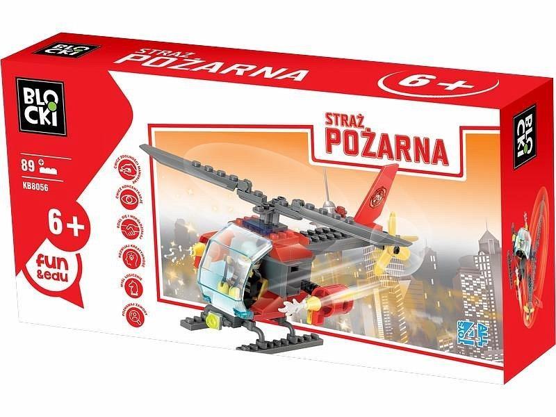 Zestaw klocków umożliwiający zbudowanie helikoptera Straży pożarnej. W zestawie figurka pilota