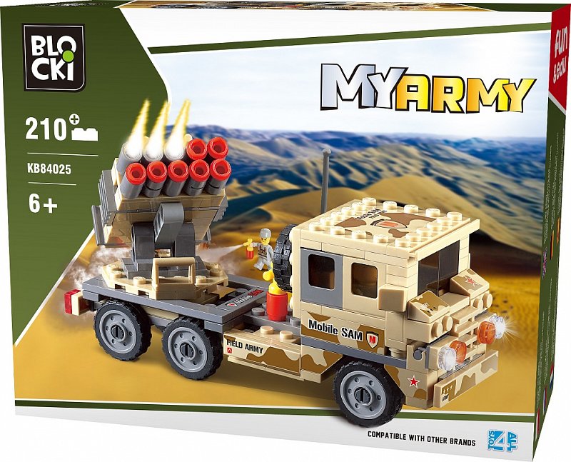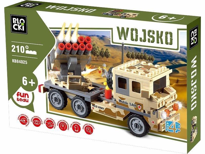 Komplet klocków do zbudowania mobilnej wyrzutni rakiet przeciwlotniczych na podwoziu ciężarówki.