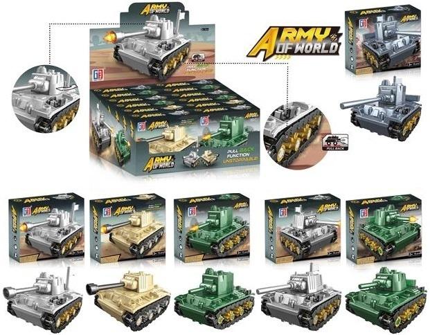 ARMU OF WORLD - KLOCKI CZOŁGI - Opakowanie Zbiorcze (12 Zestawów) Przenieś się w świat epickich bitew z zestawem klocków czołgów ARMU OF WORLD! To idealny produkt dla każdego małego stratega i fana militariów. W opakowaniu zbiorczym znajdziesz aż 12 oddzielnych zestawów, a każdy z nich zawiera mini czołg do samodzielnego złożenia. Czołgi występują w trzech wariantach kolorystycznych: klasycznym srebrnym, eleganckim złotym i bojowym zielonym, co zapewnia różnorodność i możliwość kolekcjonowania. Każdy złożony czołg posiada innowacyjną funkcję pull-back, dzięki której wystarczy go pociągnąć do tyłu, aby ruszył z impetem do przodu, zapewniając dynamiczną i ekscytującą zabawę. Klocki są łatwe w montażu, co rozwija zdolności manualne i kreatywność dziecka. Ten zestaw to doskonała propozycja na prezent, idealna do sklepów z zabawkami, dla przedszkoli czy na eventy. Oferujemy atrakcyjną cenę za 1 zestaw, co czyni cały pakiet niezwykle opłacalnym. Przygotuj się na niezapomniane godziny strategicznej zabawy z ARMU OF WORLD! Cena dotyczy 1 zestawu.