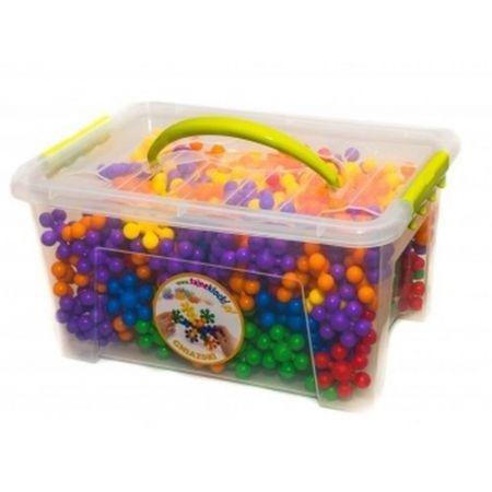 Opakowanie - plastikowe pudełko z zamykaną pokrywką, ułatwia przechowywanie klocków.