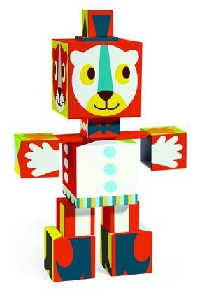 Zestaw 10 klocków z grubego kartonu do budowy 3 zwierzaków.Wysokość po zbudowaniu 50 cmWiek: 18 M +Wymiary 15,5 x 31 x 14 cm