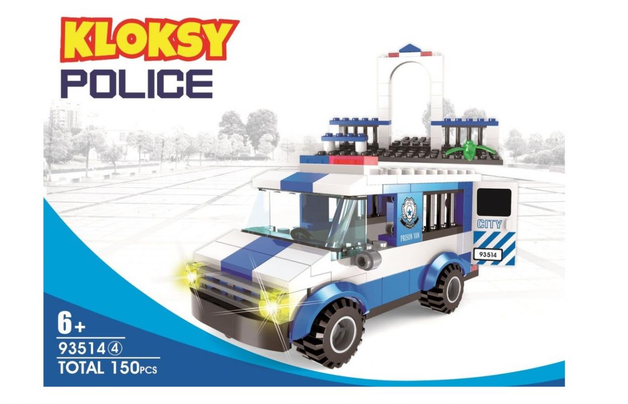 Klocki KLOKSY - Seria policja - więźniarka, 160 elementów. Zestaw pakowany w display 6 szt. wraz z innymi rodzajami pojazdów policyjnych.