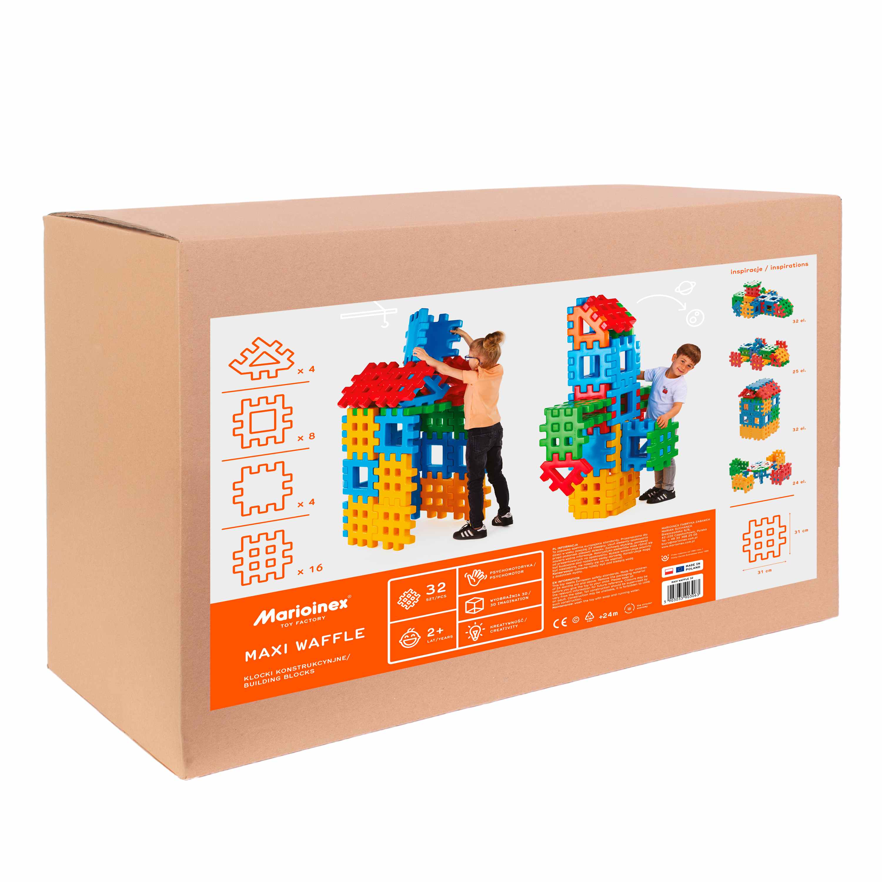 MAXI WAFFLE to maksymalnie radosna zabawa w budowanie! Gigantyczne klocki dają dzieciom możliwość zdobywania niezwykle cennych doświadczeń. Proces konstruowania nie tylko jest atrakcyjną formą spędzania wolnego czasu, ale również uczy i pomaga się lepiej rozwijać. Mali konstruktorzy z zapałem budują domki i kryjówki, a także skrzynie na skarby i niemal rzeczywistych rozmiarów mebelki.