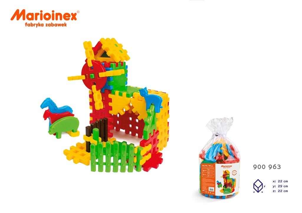 Takie klocki to woda na młyn dla dziecięcej wyobraźni! Najwyraźniej pola w tym roku były bardzo urodzajne, bo Twój Mały Młynarz będzie miał odtąd pełne ręce roboty. A jak już ziarna zostaną dokładnie zmielone, zawsze jest coś do zrobienia - a to furtkę trzeba naprawić, a to młyn zmodernizować, a to zwierzętami się zająć... No może tylko z kotem nic nie trzeba robić, bo kot zajmuje się sobą sam i właśnie, że na tym pochyłym daszku jest mu bardzo wygodnie!
