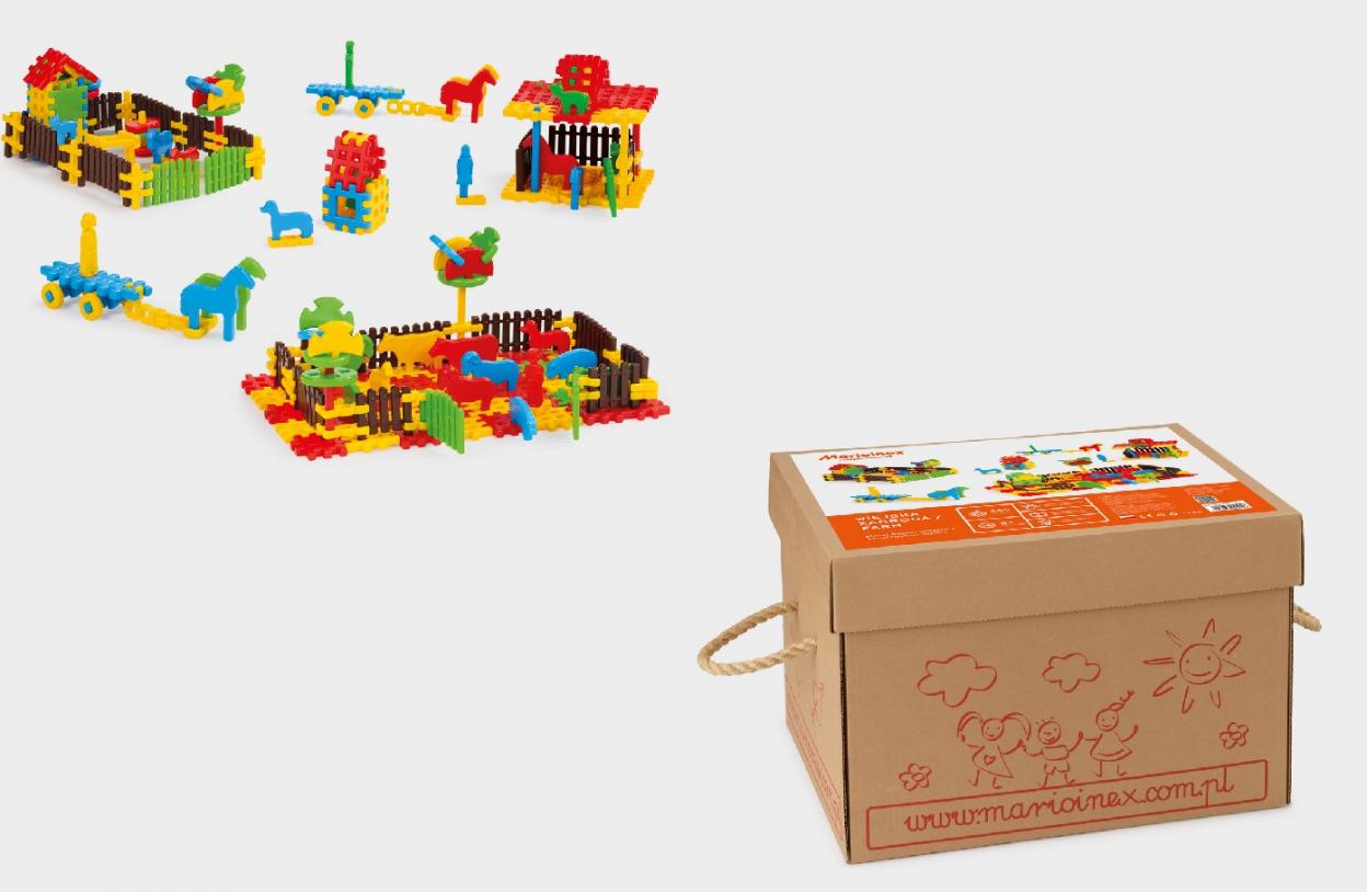 Zestaw klocków konstrukcyjnych 'wiejska zagroda' składający się z 240 elementów.