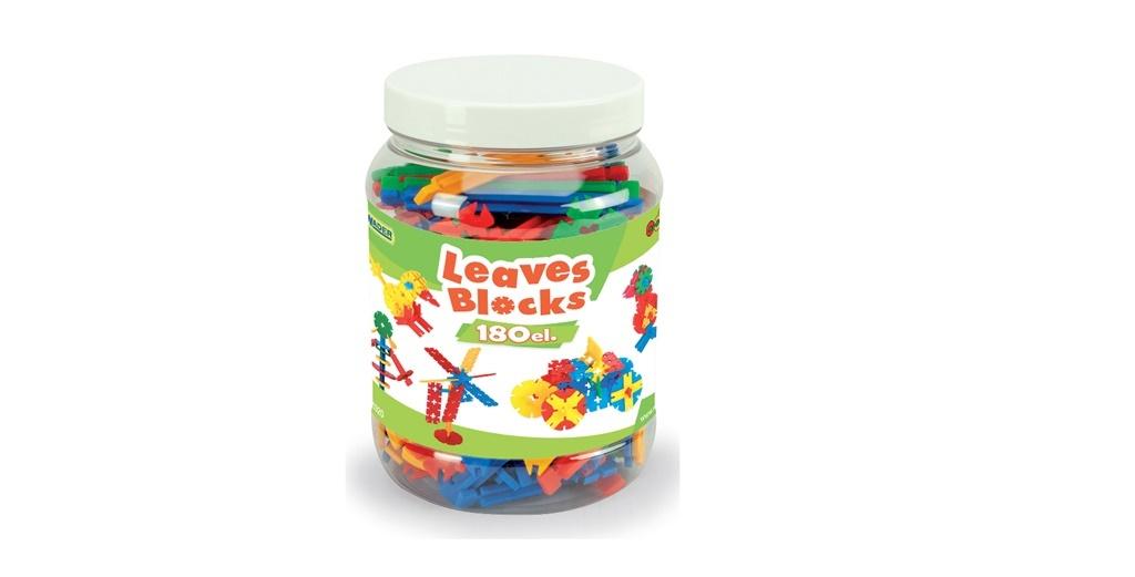 Klocki Leaves (Listki) są przeznaczone dla trzylatków i starszych dzieci. Zestaw zawiera 180 elementów, a bardzo oryginalne, nietypowe kształty i łatwość łączenia klocków stwarzają niewyczerpalne pole do popisu dla dziecięcej fantazji. Możliwości są nieograniczone ? wspólnie można zbudować samochody, statki kosmiczne, figurki zwierząt i roślin, budynki, domy z ogródkiem i wiele innych konstrukcji. Dzięki różnorodnym formom i precyzyjnemu wykonaniu, klocki można łatwo składać. System montażu ułatwia wzajemne łączenie elementów, co pozwala tworzyć większe budowle przestrzenne. Zabawa klockami listkami rozwija wyobraźnię, sprawność manualną, koordynację wzrokowo-ruchową i kreatywność dziecka. Ćwiczy koncentrację, uczy m.in. liczenia, rozpoznawania kolorów i kształtów, relacji przestrzennych ? nad, pod, prawo, lewo, obok. Wspólne budowanie z klocków z rodzicami czy innymi dziećmi rozwija umiejętności komunikacyjne oraz uczy dzielenia się i współdziałania. Zabawka wykonana z wysokiej jakości, bezpiecznego i nietoksycznego tworzywa. Zestaw zapakowany jest w wygodne pudełko, które ułatwi przechowywanie klocków. zestaw 180 kolorowych kloców o oryginalnych kształtach system montażu ułatwiający łączenie poszczególnych elementów możliwość budowania konstrukcji przestrzennych praktyczne przechowywanie w słoiku (17 cm wysokości) klocki wykonana z bardzo trwałych, nietoksycznych, bezpiecznych materiałów zabawa klockami listkami pobudza wyobraźnię i kreatywność dziecka, rozwija sprawność manualną, koordynację wzrokowo-ruchową i wyobraźnię przestrzenną, ćwiczy koncentrację, wspiera umiejętności komunikacyjne oraz rozwój społeczny ? uczy funkcjonowania w grupie oraz pomaga w nauce liczenia, rozpoznawania kolorów i kształtów zestaw doskonały do zabawy w pojedynkę oraz w grupie przeznaczona dla dzieci 3+