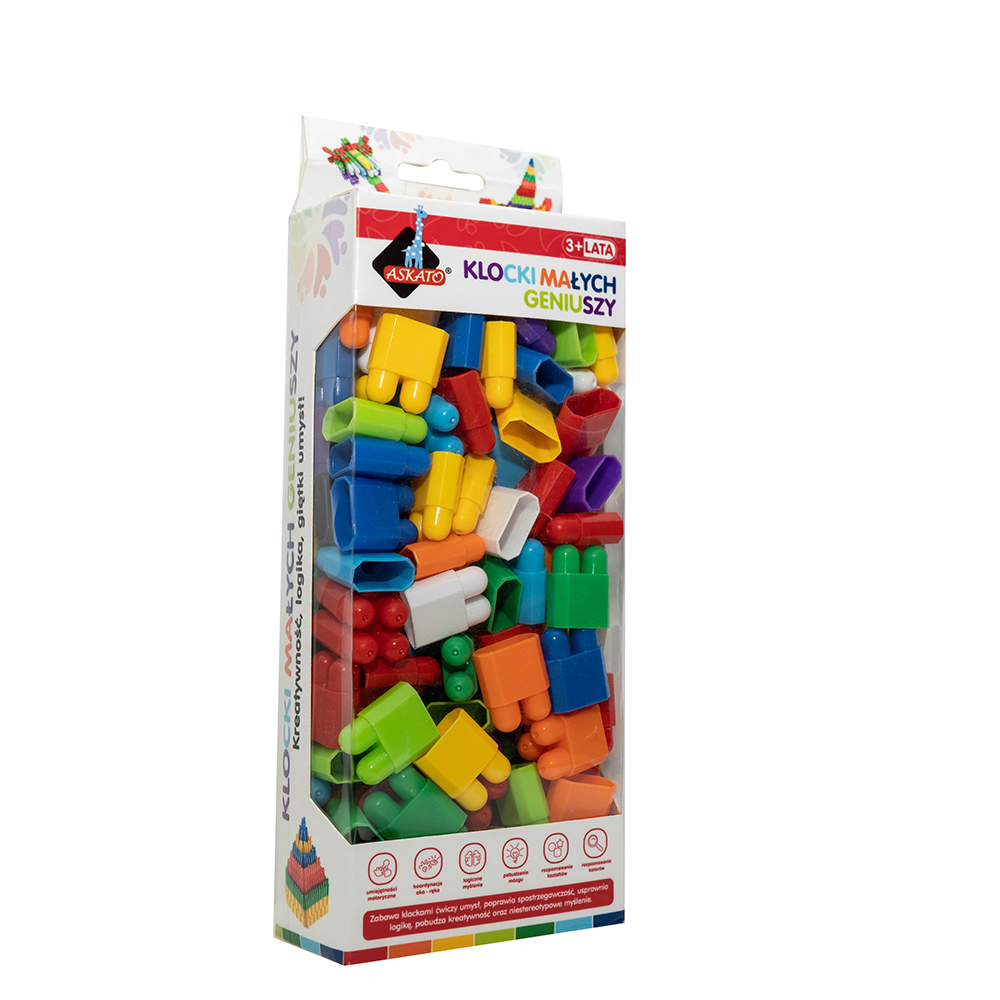 Zabawka rozwija dziecięcą kreatywność, a intensywne kolory klocków zachęcają do tworzenia coraz to trudniejszych konstrukcji.