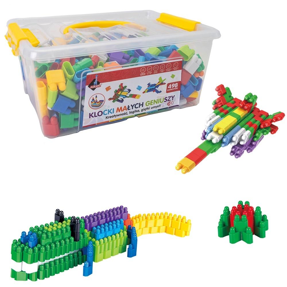 Fantastyczne, unikatowe klocki rozwijające wyobraźnię oraz postrzeganie przestrzenne dziecka. Aż 498 elementów w 10 kolorach pozwala stworzyć fantastyczne figury takich jak krokodyl, pianino, statek czy czołg. Zabawka rozwija dziecięcą kreatywność, a intensywne kolory klocków zachęcają do tworzenia coraz to trudniejszych konstrukcji. 498 elementów, 10 kolorów