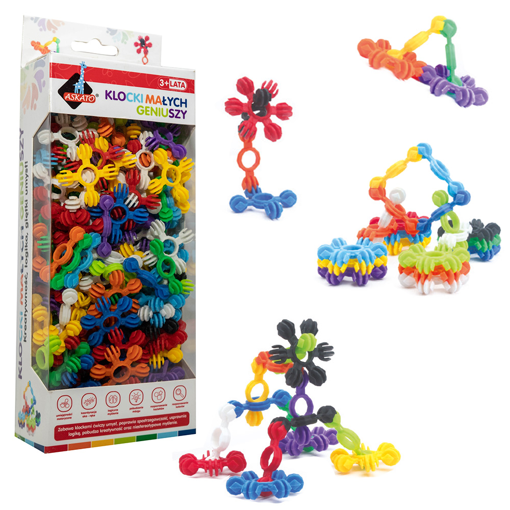 Zabawka rozwija dziecięcą kreatywność, a intensywne kolory klocków zachęcają do tworzenia coraz to trudniejszych konstrukcji.